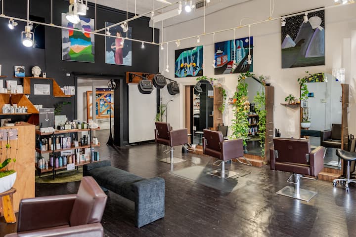 En The Maya Salon, ofrezco cortes de pelo y servicios de color vibrantes a una lista de clientes.