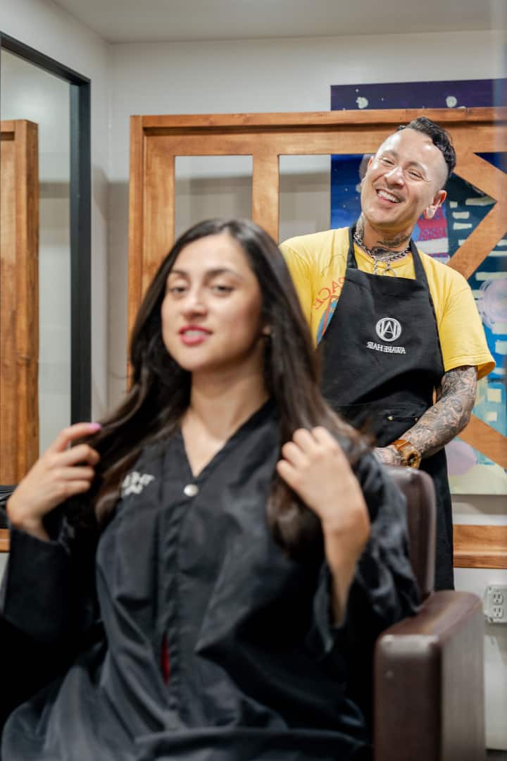 Esta sesión en el estudio incluye una consulta detallada, lavado y corte con productos de alto rendimiento. Cada estilo tiene en cuenta el tipo de cabello, la forma de la cara y las preferencias para lograr el look deseado. Es ideal para quienes buscan un mantenimiento de rutina o una transformación completa.