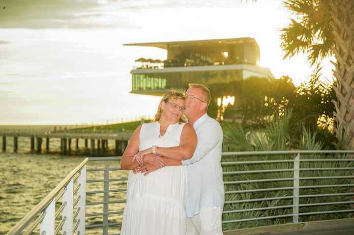 Nos vemos en el emblemático St. Pete Pier para una experiencia fotográfica rápida de 30 minutos que te captura con vistas panorámicas de la bahía, la sorprendente arquitectura del muelle y la vibrante energía frente al agua. Tu fotógrafo te guiará a través de una combinación de configuraciones sinceras y posadas, maximizando la luz dorada y los fondos icónicos mientras mantiene la sesión divertida y relajada. Lo que incluye: