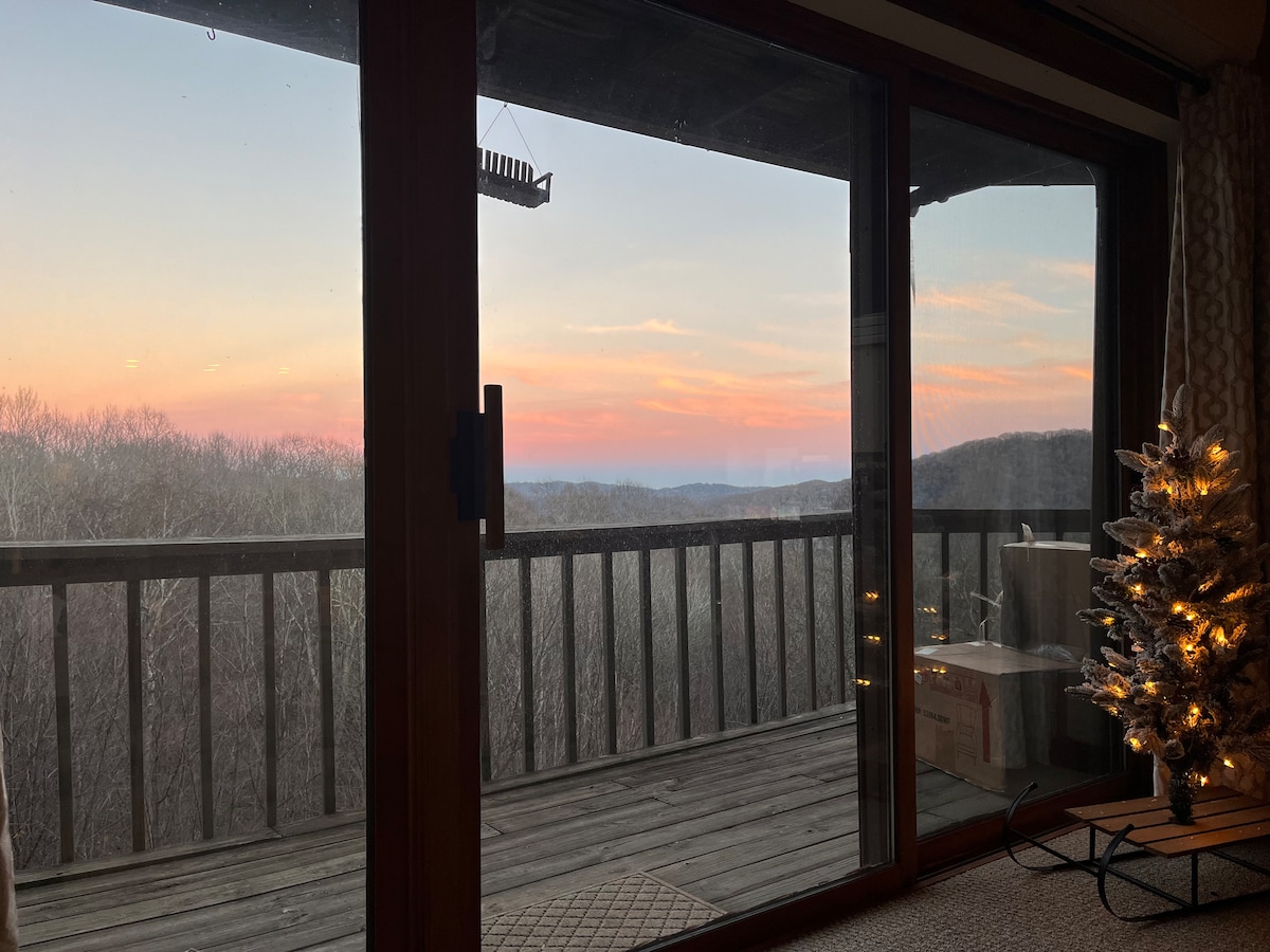 Nuevo colchón LUJOSO....REVITALIZE tú mismo o tu relación en este retiro remodelado para parejas. Disfrute del café de la mañana mientras respira el aire de la montaña y la vista abundante; termine el día con su bebida favorita y la puesta de sol. Wifi; 2 televisores ROKU (sin cable); estación de café; cocina equipada con gabinetes nuevos, granito y electrodomésticos/enfriador de vino, todo esto para que tu estancia sea cómoda. Senderismo, tirolesa, bodega - 2 millas. En lo alto de árboles en el MTN... cerca de todas las actividades/esquí.