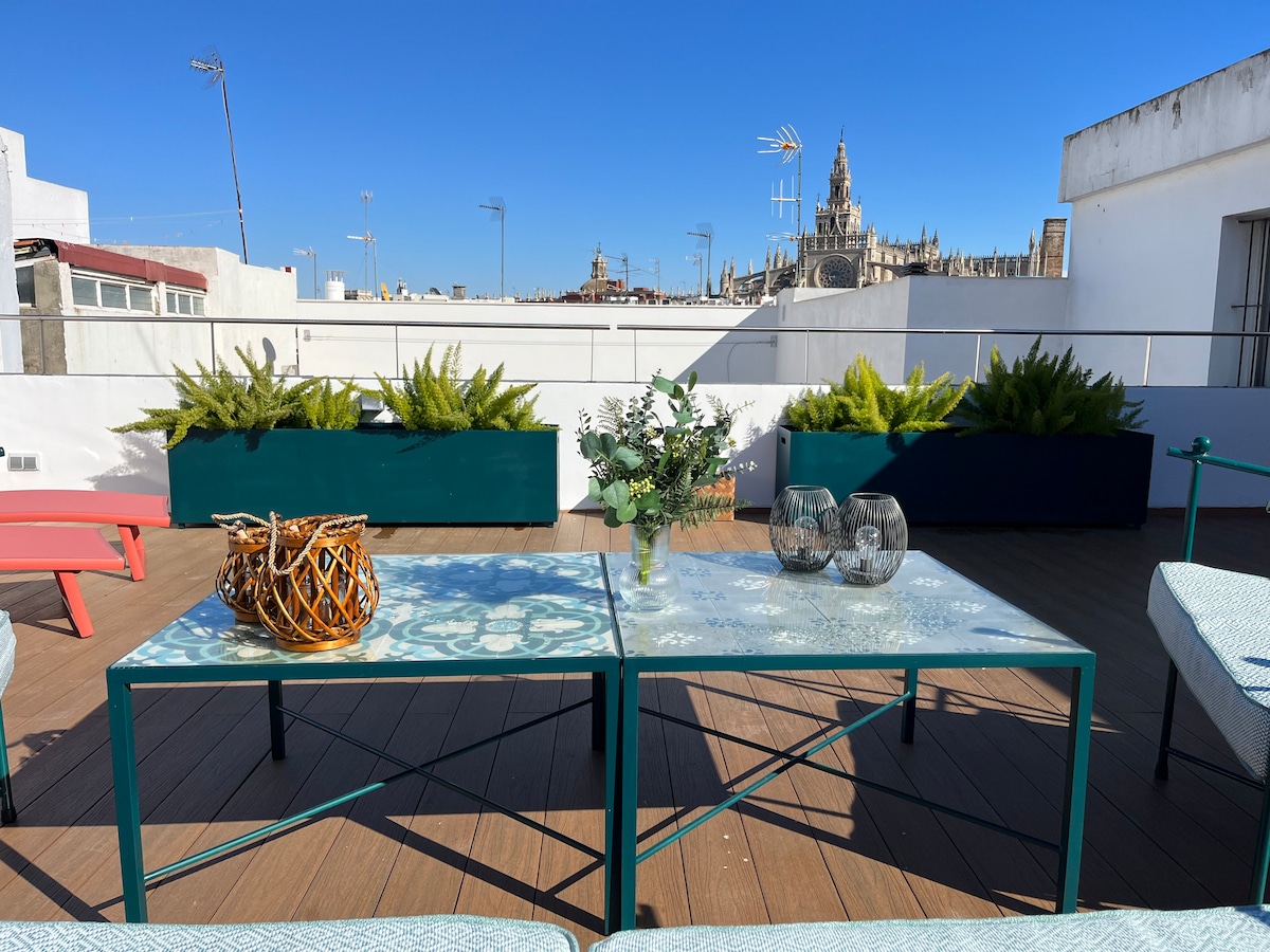AZOTEA PRIVADA con tres balcones exteriores y vistas a la Catedral y situada a tan solo 250 metros de el Real Alcazar. 3 dormitorios en suite con baño propio cada uno. Descubre Sevilla andando y déjate llevar por los mejores sitios de la ciudad en una zona mágica y llena de encanto rodeada de bares de tapas y cerveza helada. Relájate durante tu estancia y desayuna tranquilamente debajo de casa. Segundo piso sin ascensor💪🏻 ♻️ Ubicación ideal para no gastar dinero en taxi!