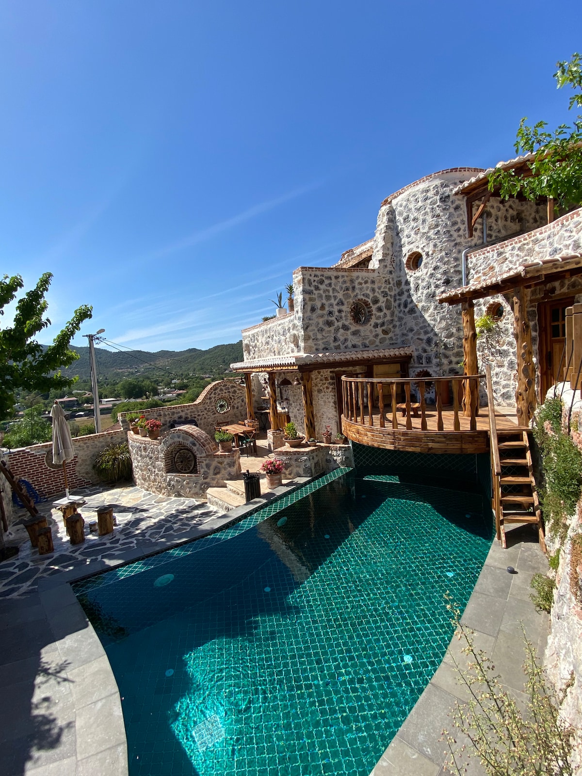 Casa de piedra con piscina y jacuzzi con vistas a la bahía de Kabak