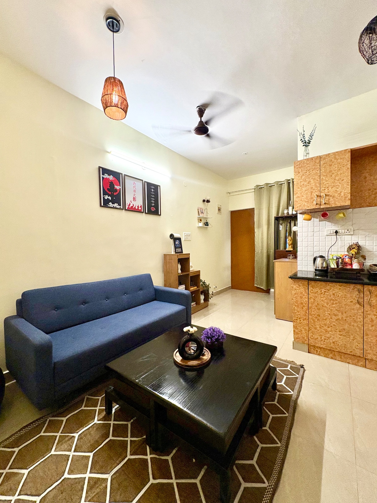 Mi apartamento de inspiración «Japandi» combina la sencillez y el minimalismo japoneses con la comodidad y la calidez escandinavas. Durante tu estancia, experimentarás asientos bajos de estilo japonés y un balcón con vistas a la vegetación. Disfruta de comodidades modernas de 5 estrellas con eficiencia energética y una cocina equipada. Nuestro Airbnb tiene una ubicación céntrica, a 10 minutos de la Universidad de Cristo, Lalbagh y la estación de metro de Jayanagar. Un escondite único en una tranquila calle sin salida.