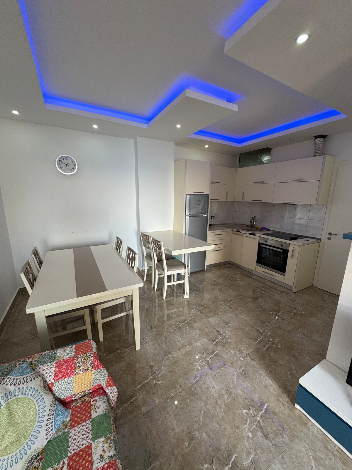 Explorar un nuevo departamento loft moderno con acceso directo a la playa de Kune. Este loft y espacioso departamento tiene capacidad para una familia o hasta 4 adultos con un bebé pequeño de menos de 2 años y es el lugar ideal para relajarse. Cocina extravagante, con isla de desayuno, para disfrutar del café y el expreso por la mañana. Sofá cómodo y elegante para una relajante tarde o noche frente a la televisión, vistas al mar, vistas a la ciudad de Shengjin o mientras lees. Dormitorios tranquilos separados del amplio pasillo y el baño Balcón.