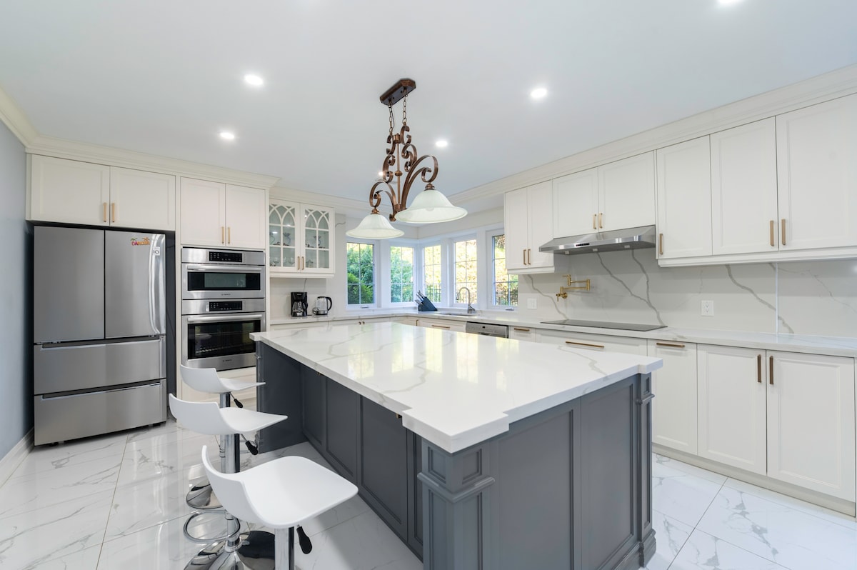 La impresionante casa en Etobicoke está a solo unos minutos del aeropuerto y del centro de la ciudad. Esta espaciosa casa moderna de lujo, de concepto abierto y raro, está está bellamente diseñada y decorada. Es una casa totalmente equipada y tendrá todo lo que puedas desear para una estancia corta. ¡Perfecta para familias numerosas y grupos! Edad mínima 25 años para reservar. Habitación 1: cama tamaño king. Habitación 2 camas tamaño queen. Habitación 3 camas individuales y otra cama individual extraíble. Habitación 4 camas queen. Política de no fiestas ni ruido excesivo. Este es un alojamiento tranquilo.