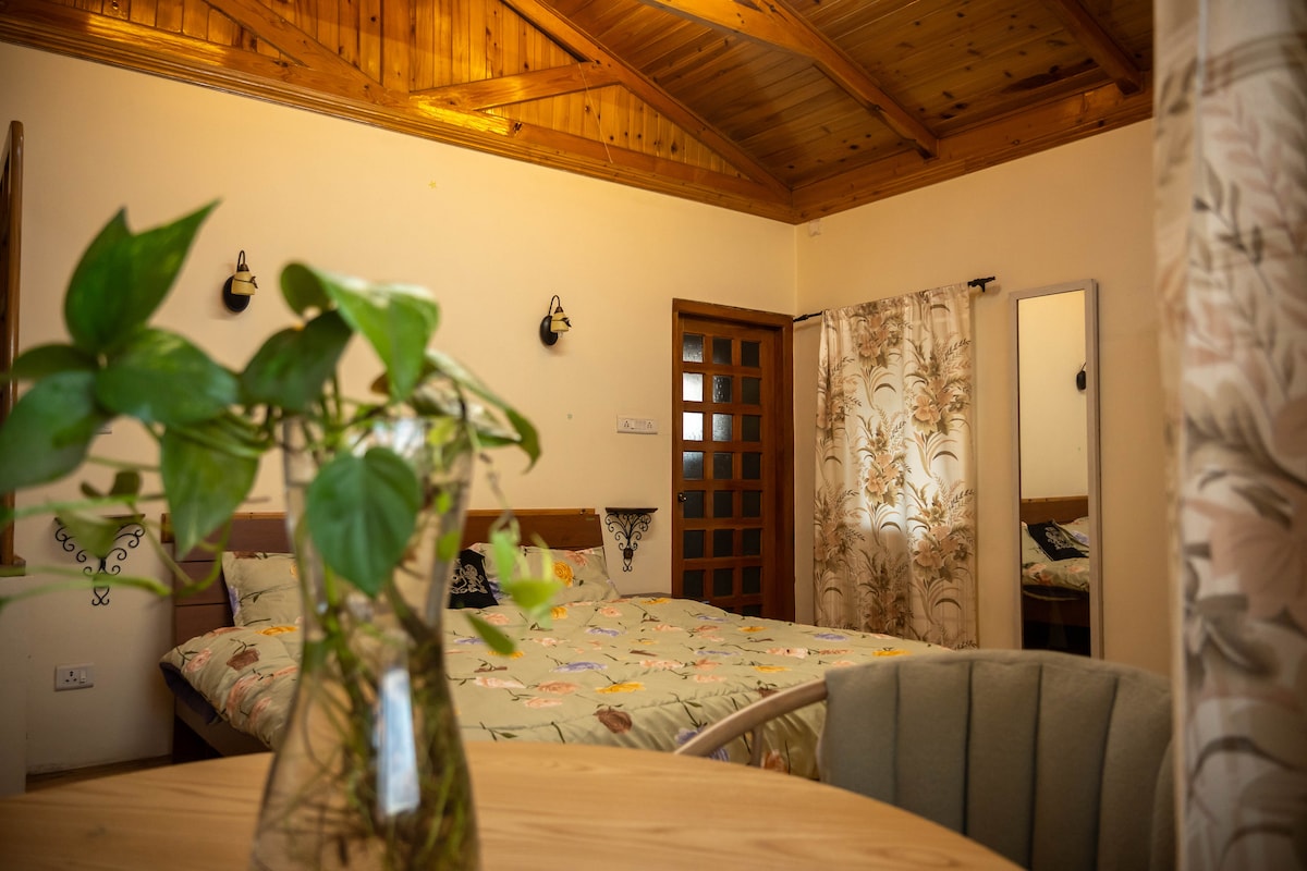 Step into a warm and thoughtfully designed 2BHK retreat in Shillong, styled with soft earthy tones, handcrafted wooden furniture and cozy boho accents. The apartment offers a spacious living room, serene bedrooms with hotel-style bedding and a charming dining nook with a live-edge wooden table. Soft lighting, curated décor and peaceful surroundings make this the perfect space to relax, unwind and feel completely at home. Perfect for couples, families or anyone seeking a peaceful mountain escape.