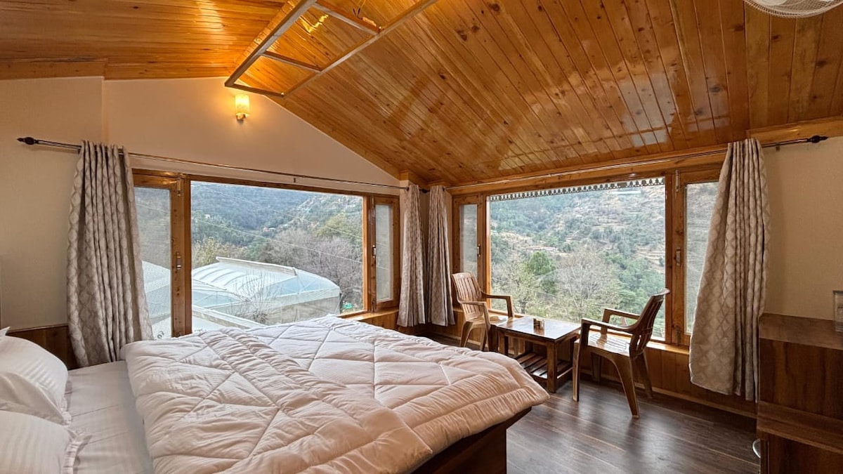 Un refugio sereno en la ladera, encaramado en la cresta más alta de un denso bosque deodar a una altitud de 8000 pies, Cedar Hill Lodge es un paraíso para los viajeros, que ofrece un refugio tranquilo en medio de cedros gigantes. Mientras paseas por los terrenos, descubre los restos de su pasado rústico, gallinas pastorales, una cabaña de pastor que se suman al encanto de la propiedad. Situada a lo largo de la antigua ruta migratoria de la tribu Gaddi, esta encantadora propiedad te invita a conectarte con el esplendor de la naturaleza y revitalizarte.