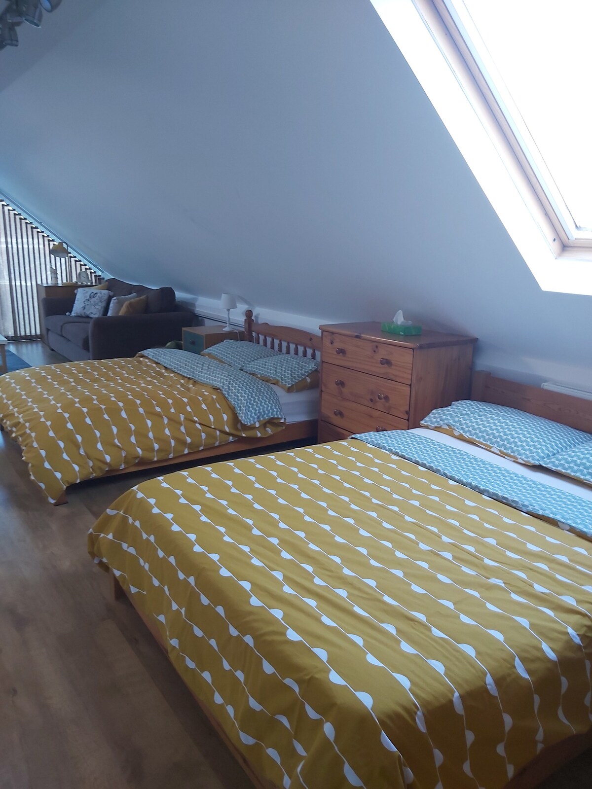En este alojamiento se respira tranquilidad: ¡relájate con toda la familia! Una encantadora casa unifamiliar de 3 dormitorios que está a solo 12 minutos en coche del centro de la ciudad. Esta casa tiene una espaciosa cocina de planta abierta y salón/comedor que es el lugar perfecto para relajarse después de explorar la zona local. El dormitorio principal tiene dos camas individuales. El segundo dormitorio también tiene dos camas individuales y acceso completo al baño principal. El tercer dormitorio tiene una cama individual. En el exterior hay un encantador jardín con patio.