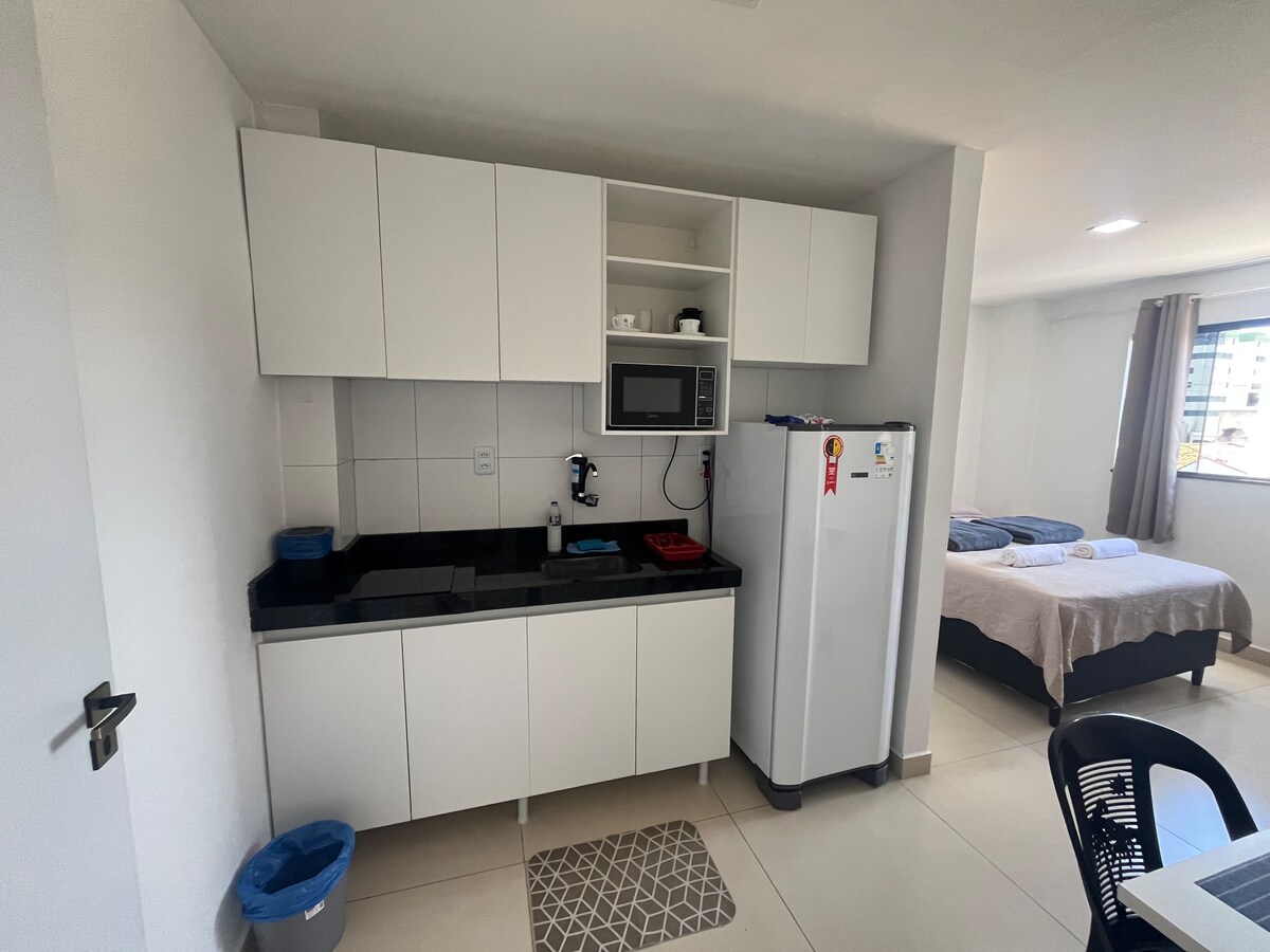 La suite grande, nueva y moderna ofrece comodidad y seguridad. Equipado con cama tamaño queen, sofá con capacidad para otra persona, aire acondicionado, TV, Wi-Fi, cocina equipada con minibar, microondas, hervidor de agua, platos y otros artículos para hacer aperitivos, comidas pequeñas o beber un buen vino. Situado en el centro de Vitória da Conquista, también tiene un garaje cerrado, con control remoto. Edificio con cámaras y cerradura digital. Espacio elegante y con estilo.
