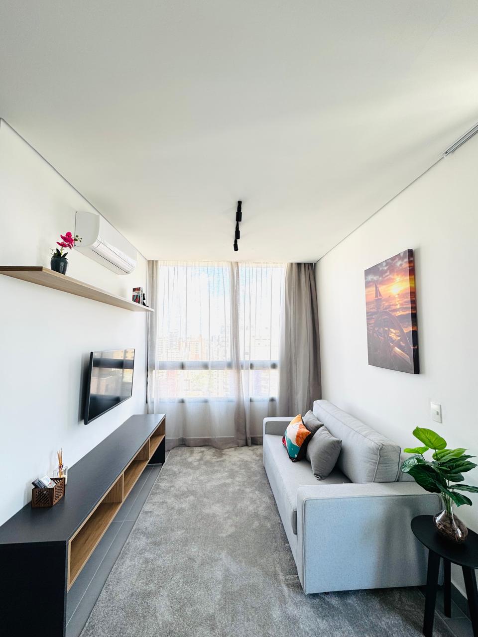Setin Midtown Campinas te está esperando. Nuestro departamento tipo estudio tiene 45 m2 con concepto totalmente abierto, completo con utensilios, con aire acondicionado, todos los servicios que te gustaría tener en tu alojamiento combinados con una decoración moderna. Tenemos un garaje privado, portero las 24 horas y "supermercado". Estamos a 17 minutos del aeropuerto de Viracopos, a 5 minutos de Royal Palm Events.