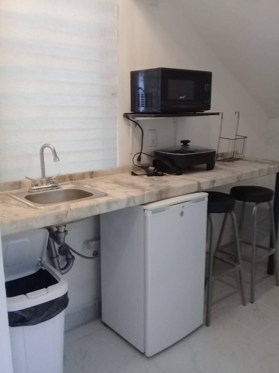 Es un cuarto chico con lo necesario para poder hospedarse a un bajo costo! Si tiene clima No cuenta con gas , tiene una estufa eléctrica! Cuenta con una cama matrimonial clima caliente, Frío Una tv de 32’ con Netflix y Roku Internet rápido Agua caliente 1 Baño con espejo Secadora de pelo Cubiertos 🍴 Espacio en la cochera para automóvil (no tiene reja la cochera) La zona es muy tranquila y céntrica! A 5 minutos de las plazas fashion drive, punto valle y galerías mty 🚗