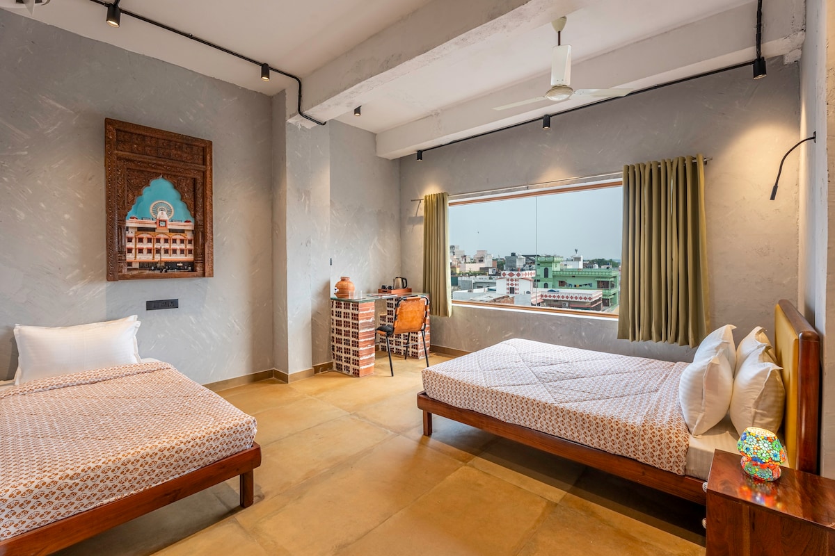The triple room at Local Lok offers generous space for small groups, friends or families. Large windows brighten up the room and open to a relaxed city view, giving the space a breezy, open feel. With minimalist interiors, a spotless washroom and comfortable bedding, this room is designed to keep your stay smooth and peaceful.
