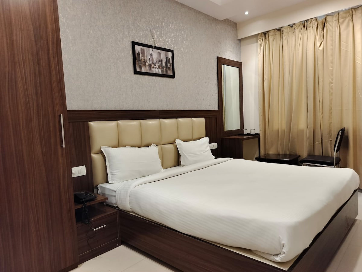 Habitación de lujo cerca del templo Kashi Vishwanath | Estadía de lujo en un alojamiento histórico Diseñada con interiores modernos y servicios de primera calidad, la habitación cuenta con aire acondicionado, ropa de cama lujosa y un baño bien equipado. Los huéspedes pueden disfrutar de la vibrante energía de las calles del templo. Ideal para peregrinos, parejas y viajeros que buscan comodidad y clase, nuestro espacio garantiza serenidad a pocos pasos de lo divino. Reservá ahora para disfrutar del alma de Varanasi envuelta en comodidad, lujo y tradición.