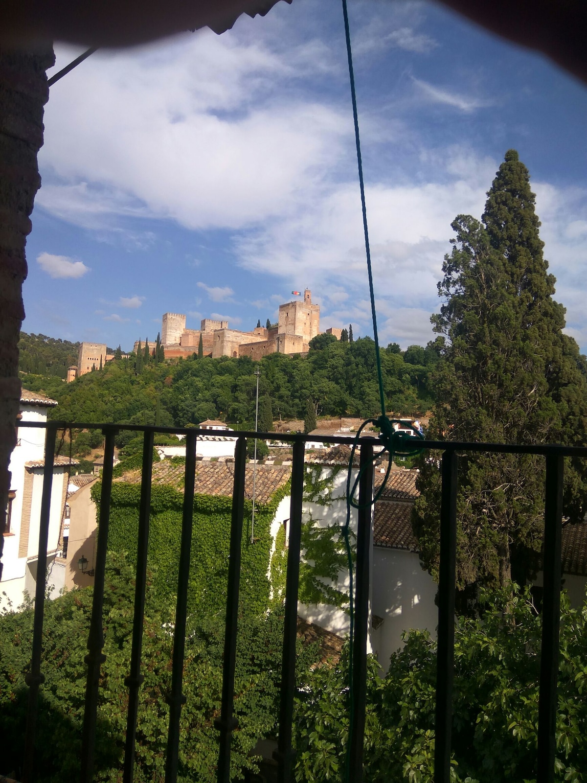 Departamento con soleada terraza y grandes vistas hacia la ciudad y sierra nevada, en el emblemático barrio del realejo, a 1400 metros andando de plaza nueva, ubicado dentro de un palacete morisco de mas de 100 años, tipo carmen, en zona residencial. Dejamos a disposición de los huéspedes todo lo necesario para su estancia, sabanas, gel, café, aceite, etc. Estamos a su disposiciones para indicarles todo lo que precisen saber sobre la ciudad. Gay friendly