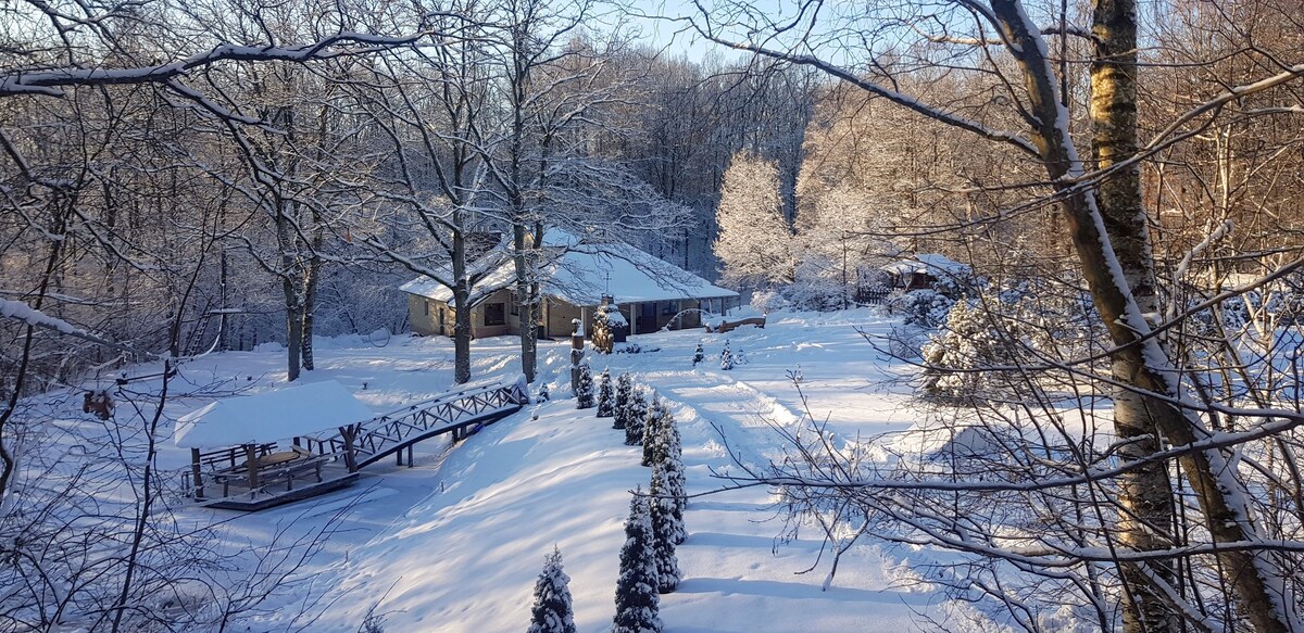 Hi there, it is a secluded place for your rest. Among majestic oaks, spring water and deep peace with the voices of birds. We will pamper you with the pleasures of sauna and hot tub. Meals available if request, informing us before. Great place to spend time with family or friends. We invite you to stay overnight. We want to inform you that each extra person costs 30eur. Sauna and hot tub for an extra charge. sauna 50eu per day. Hot tub 150 eu. ( 160eu )in the winter season