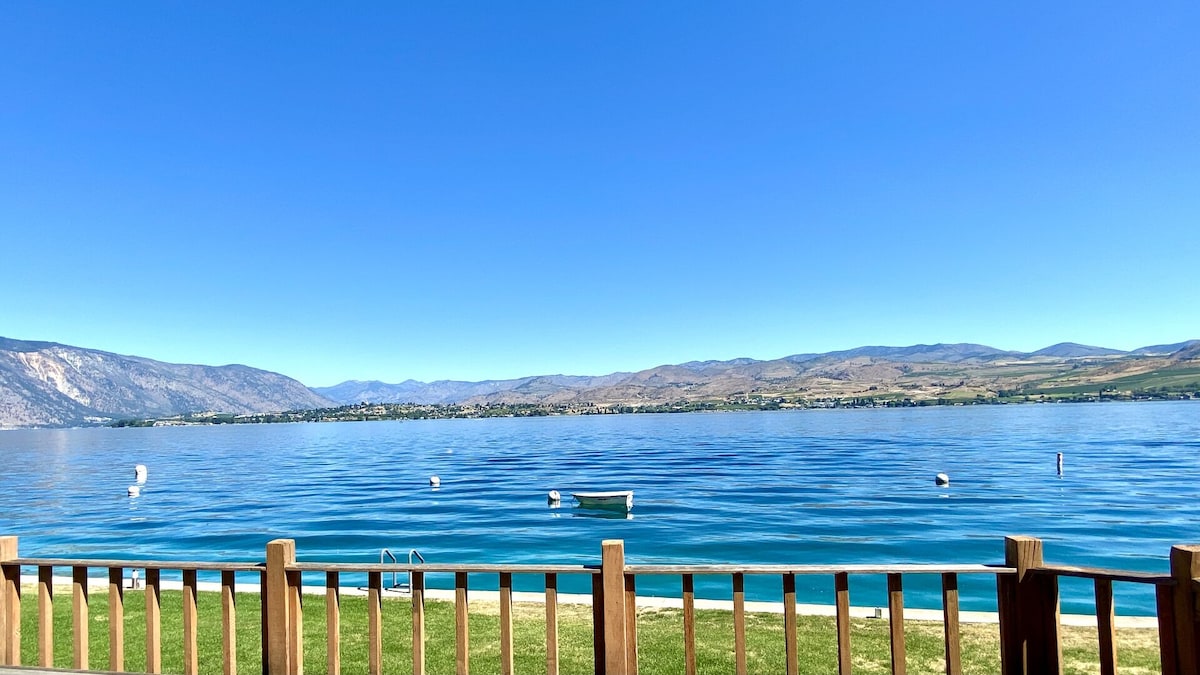 Esta propiedad es un apartamento de arriba actualizado que cuenta con dos dormitorios con camas tamaño queen, cocina totalmente equipada, cómoda sala de estar con vistas panorámicas del precioso lago Chelan. Ubicado justo al llegar a la ciudad, enfrente del agua. El apartamento está a 1/4 de milla del parque Lakeside, a 1/2 milla del parque acuático Slidewaters y muy cerca de excelentes bodegas y restaurantes. ¡Ven por el vino, quédate por las vistas!
