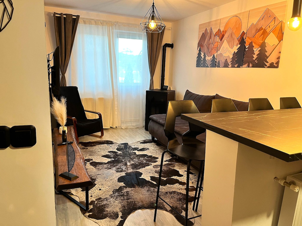 ¡Descubre un rincón del cielo en medio de las montañas de Green Horizon! Ideal para familias de hasta 4 personas, este apartamento de dos habitaciones ofrece todo lo que necesitarías para una estancia inolvidable. El diseño moderno y los colores agradables te harán sentir en casa. Si deseas relajarte en la sala de estar después de un día ajetreado o disfrutar de un café en la terraza, la hermosa vista a las montañas te encantará en todo momento. ¡Elige disfrutar de la belleza de Sinaia de la manera más agradable con Green Horizon!