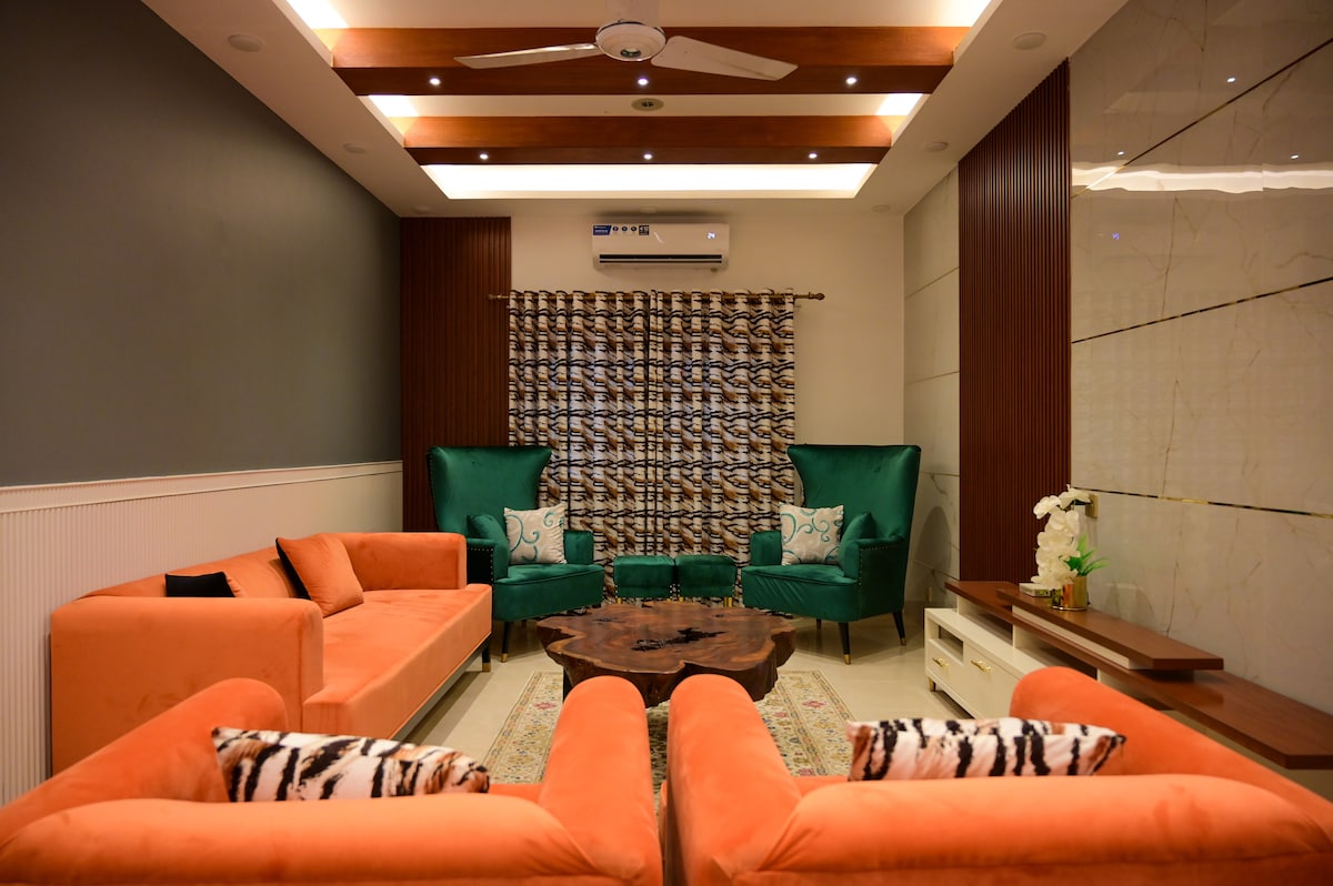 BIENVENIDO a A Luxury Residence, un elegante bungalow de nueva construcción ubicado en un vecindario tranquilo y prestigioso en la ubicación privilegiada de DHA Karachi, a solo 30 minutos del Aeropuerto Internacional Jinnah y a solo 10 minutos de Dolmen Mall Clifton y Sea View Beach. Este bungalow de dos pisos ofrece un alojamiento cómodo y elegante para un máximo de 8 huéspedes con 4 dormitorios en suite, cada uno equipado con comodidades modernas para garantizar una estancia lujosa e inolvidable. Solo aceptamos reservas de familias.