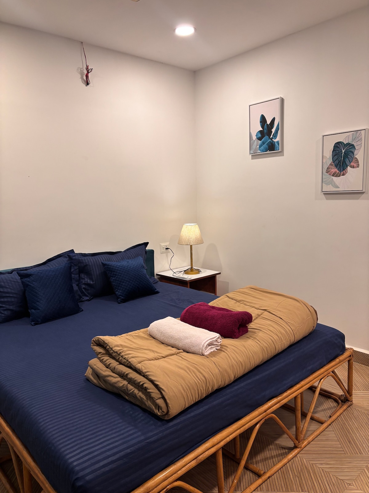 ¡Bienvenido a nuestro renovado apartamento de 1 dormitorio en el corazón de Siolim, Goa del Norte! Este acogedor refugio con aire acondicionado es ideal para parejas, viajeros solos o grupos pequeños que buscan disfrutar de una estancia relajante pero cómoda. Rodeado de exuberante vegetación y a poca distancia en coche de playas populares, nuestro apartamento combina el confort moderno con el encanto tropical. Cuidadosamente diseñado con una mezcla de arte contemporáneo. Todas las habitaciones tienen aire acondicionado, lo que garantiza la comodidad durante el clima cálido de Goa.