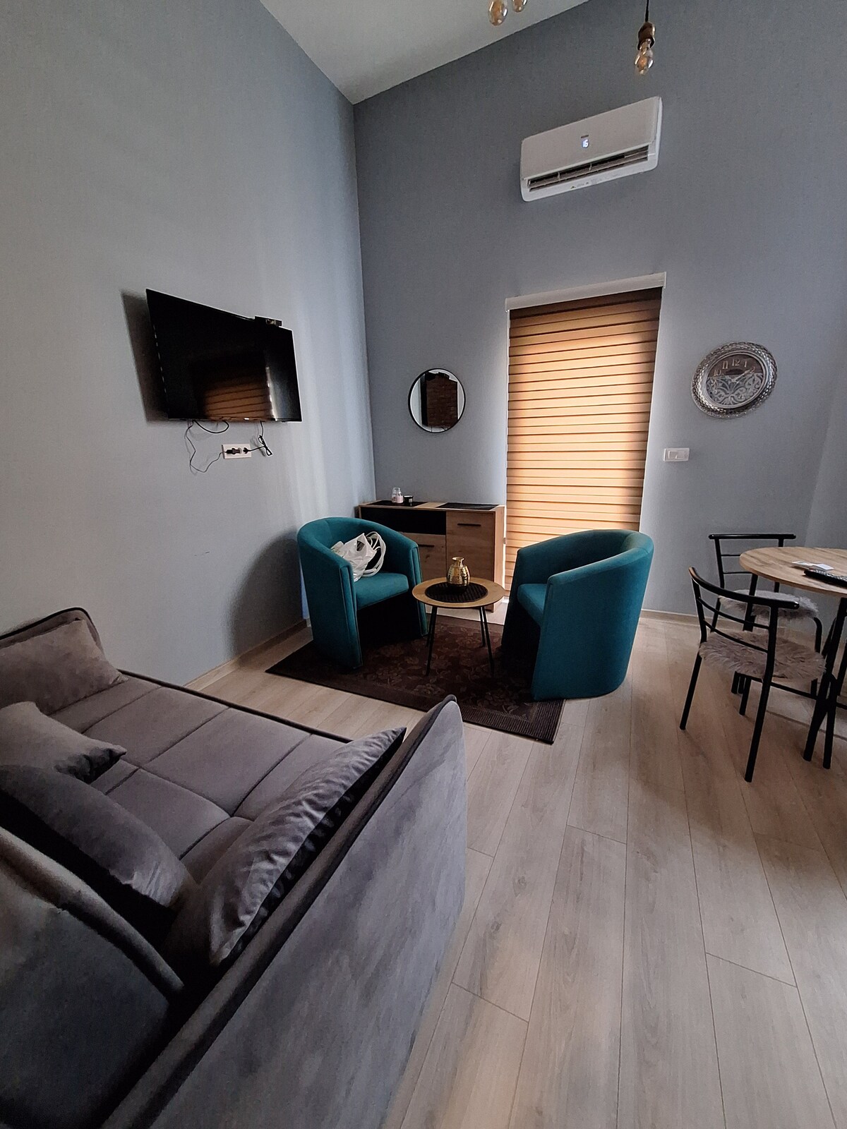 Make yourself at home in this cozy, boho-inspired studio right in the heart of Sombor. The apartment is fully furnished and thoughtfully designed, featuring a comfortable bed, well-equipped kitchenette, and a lovely private balcony with a charming view of the town—perfect for morning coffee or evening relaxation. Just steps away from local cafes, shops, and cultural spots, this is an ideal base for exploring everything Sombor has to offer.