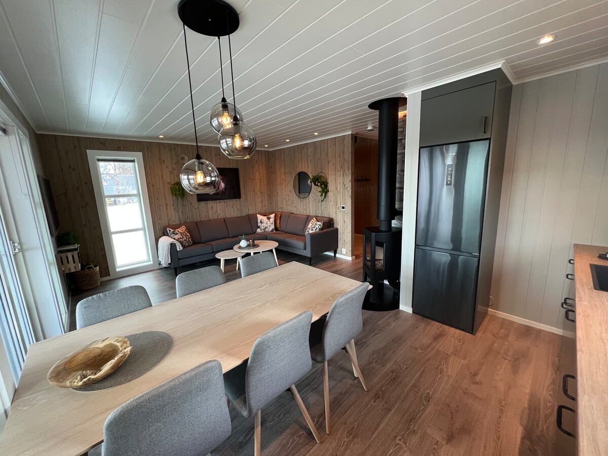 Te damos la bienvenida a Skaidi High-end Luxury Lodge. En los alrededores tienes un restaurante con productos locales, comestibles, senderos para motos de nieve, zonas de esquí, río salmón, senderismo de montaña con oportunidades de caza y pesca. Recogida de bayas en otoño. El campo de golf más septentrional del mundo está a 7 km de distancia. ¡Sol de medianoche en verano y auroras boreales en otoño e invierno! Skaidi es un centro comercial entre Hammerfest, Nordkapp y Alta. Estacionamiento gratuito en el exterior. Carga rápida en auto eléctrico a 200 metros del departamento.
