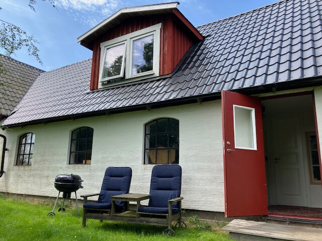 Encantadora casa de campo de entramado de madera reformada, rodeada de viñedos. Muy cerca de la reserva natural (Kullaberg), baño en el mar y restaurantes. Kattegattleden y Kullaleden. Establo convertido, muchos detalles hechos a mano restaurados 2010-15 con cocina, baño y 3 camas + sofá cama. Vecino del viñedo de Arild cerca del mar. A 6-700 metros de restaurantes y del puerto.