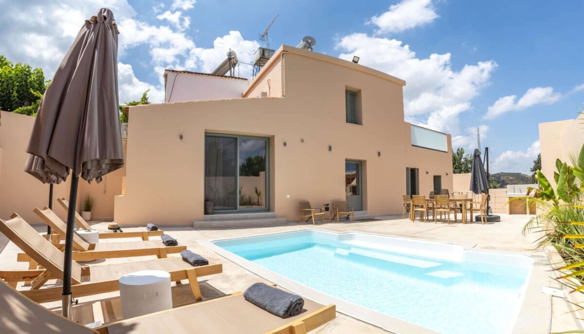 Agave house is new luxury residence with infinity pool(be ready in April 2023).Located in Stalos area in Chania at the foot of a rocky hill surrounded by private land of olive trees. The house is designed in minimal style for tose seeking comfort and pleasure with breathtaking view of the Cretan sea .Τhodorou island ,Chania city and the White mountains . All equipment of the house is charecterized by high quality design.