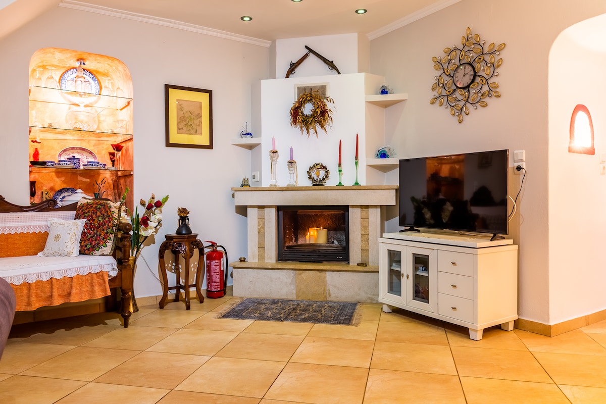Esta es una casa construida y amueblada como una casa en lugar de una propiedad de inversión y la diferencia se muestra. La decoración externa e interna ha sido cuidadosamente diseñada con un estilo clásico moderno y romántico por los propietarios. Villa en tierra verde con árboles e increíble mar abierto, vista al puerto, a 3 minutos en auto del centro del pueblo 'Ubicación privada tranquila, a 10-15 minutos a pie del pueblo o a 3 minutos en coche del paseo marítimo de la ciudad' Capacidad para 4 personas (2 dormitorios) y 2 baños.