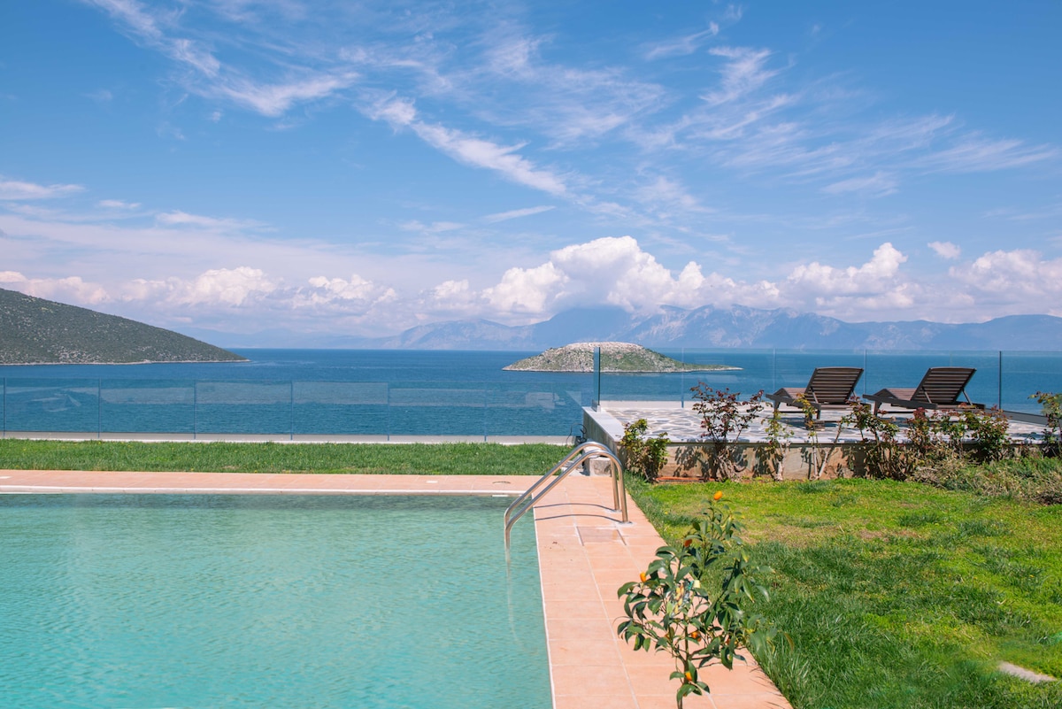 Villa frente al mar con playa privada a 1 hora de Atenas