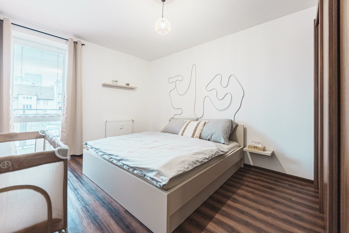 Dej si nohy na stůl a odpočiň si v tomto klidném, stylovém ubytování. Apartmán ti nabídne plně vybavenou kuchyň, pohodlnou a prostornou postel. Pár minut od ubytování se dostaneš do přírody a zároveň to není daleko od centra města.