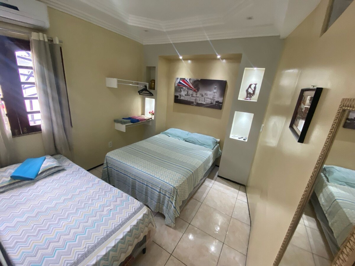 Apartamento entero solo tuyo, con 1 cama doble, 1 cama individual, todo amueblado,con aire acondicionado, smartv con Netflix, espacio con mesa, cocina completa con nevera, microondas..., baño, cómodo, seguro, en un barrio tranquilo,ya a 1 km del centro, cerca de un mercado y una panadería con acceso a todo . Buena ubicación para mototaxi todo el tiempo , Uber y taxi. Cerca de Santa casa de soterior. Considerado uno de los mejores barrios del Soterior por su tranquilidad .