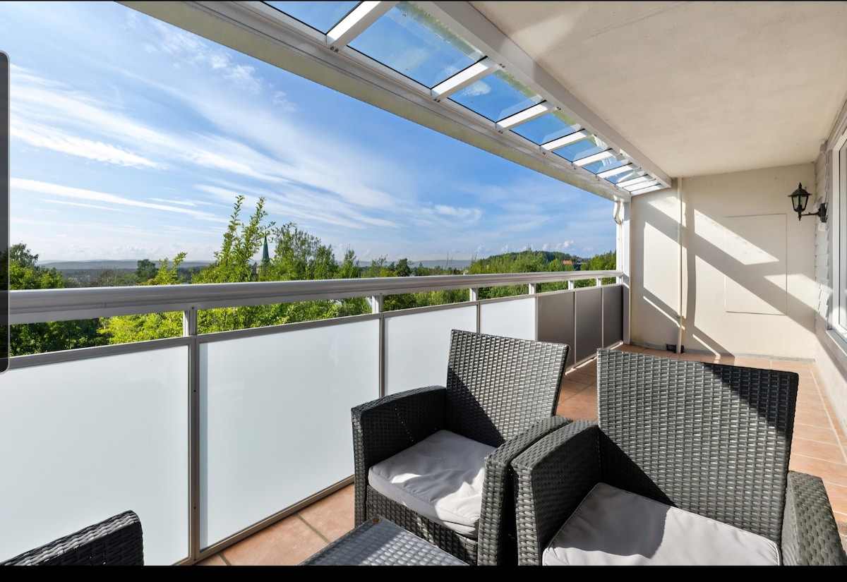 Watch the seasons change from your bed and unwind in my luxurious top-floor apartment with incredible views of Pollevann lake & Norwegian nature reserve! Close to adventure: 6 min drive or bus to Tusenfryd, 10 min walk to Oslo/Tusenfryd bus (26 min to Oslo S), and to freshwater swimming. Fjord beaches are 5 min away by car. Nice trekking area. Enjoy Moroccan decor, a Nespresso on the balcony, and the nearby playground. Explore the ancient Nøstvedt Stone Age site and a BBQ hut just steps away.