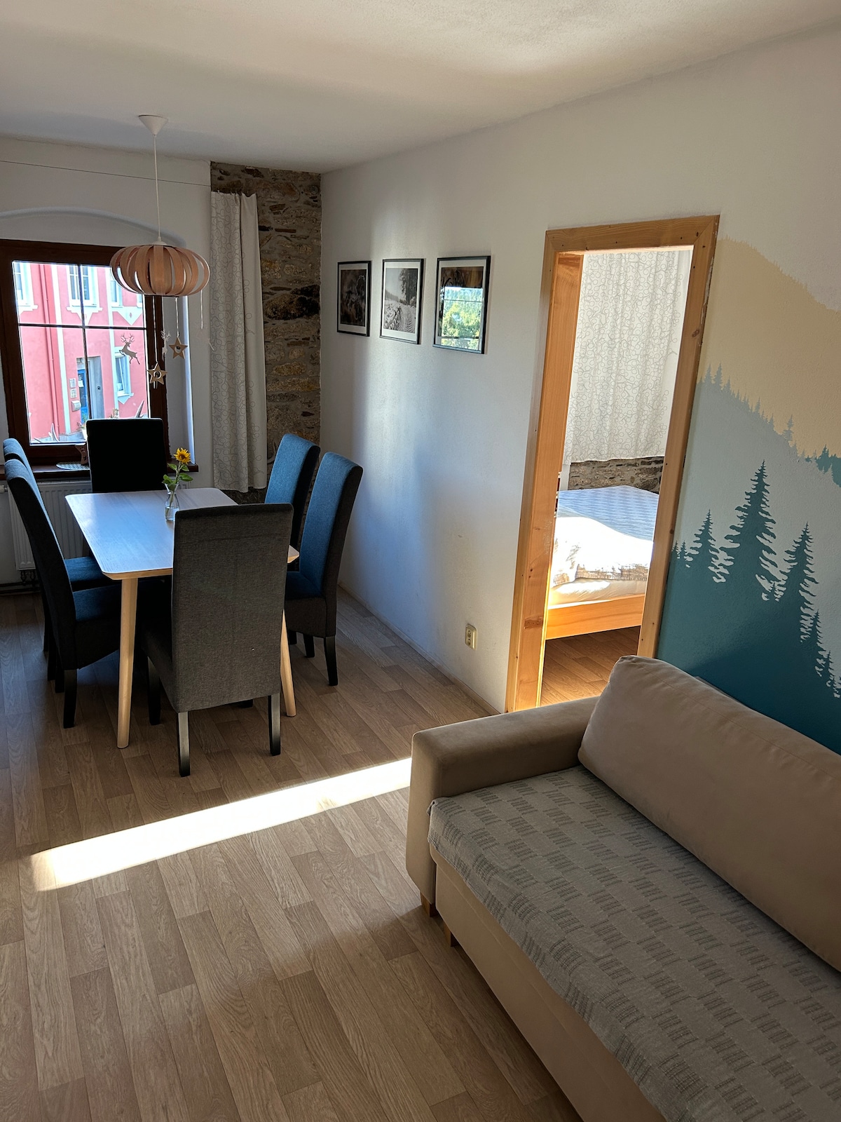 En este elegante apartamento en el corazón de Abertam, en la plaza de una pintoresca ciudad de montaña con una rica historia, tenemos varios apartamentos modernos de montaña para ti, diferentes diseños con una vista única de Plešivec y sus alrededores. En el centro de las montañas Ore, a 900 metros sobre el nivel del mar, encontrarás tu base ideal para unas vacaciones durante todo el año. La estación de esquí Plešivec y las interminables rutas de esquí de fondo y ciclismo están a solo unos minutos de la casa. Toda tu familia se divertirá.