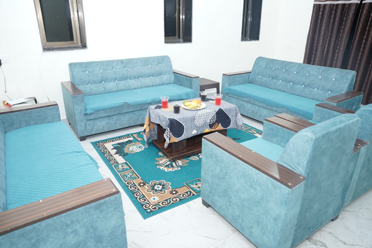 Relájate en Sukoon-e-Bahar Mahal, una villa única y tranquila de 2BHK ubicada en la carretera principal en una zona tranquila y elevada que da una sensación refrescante de estación de montaña. El alojamiento cuenta con 2 dormitorios con baño y balcón, un amplio salón comedor, 1 cocina, 3 baños, un jardín, un patio pequeño, una terraza y 2 lugares de estacionamiento gratuitos. Es ideal para familias, parejas o grupos pequeños que quieran relajarse, recargar energías o trabajar de forma remota.