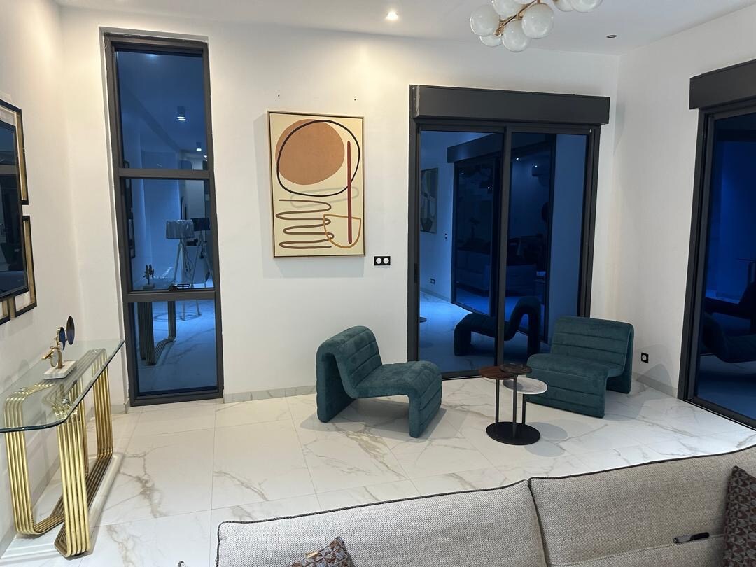 Villa elegante y atípica, primera línea de mar, acceso directo a una playa privada con tumbonas. Piscina individual privada. Ofrece 3 dormitorios con 3 baños, wc privados, cocina equipada, sala de estar luminosa. A 200 m de Saly Center (panadería, restaurante , farmacia librería) A 1 minuto, Hotel Mövenpick, restaurantes de playa. Incluye: Wi-Fi, IPTV, generador, estacionamiento, reposera de playa privada, ama de llaves Además: ocio, electricidad Todo está reunido para una estancia inolvidable