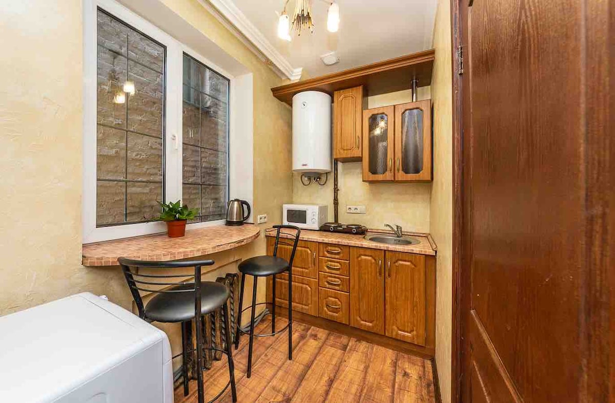 Nos complace presentarle un hermoso estudio tipo hotel en un edificio histórico, construido en 1905 año, ubicado en el centro histórico de la ciudad y está en la lista de monumentos arquitectónicos. Ofrecemos a nuestros huéspedes unas vacaciones en apartamentos nuevos, después de la renovación, con techos altos y un patio tranquilo. Sala de estar bien diseñada con una cama grande, un mini gatito compacto equipado. El diseño está creado para su comodidad y calidad. TV ELED-Smart de 43 pulgadas con TV por cable, Internet, WIFI