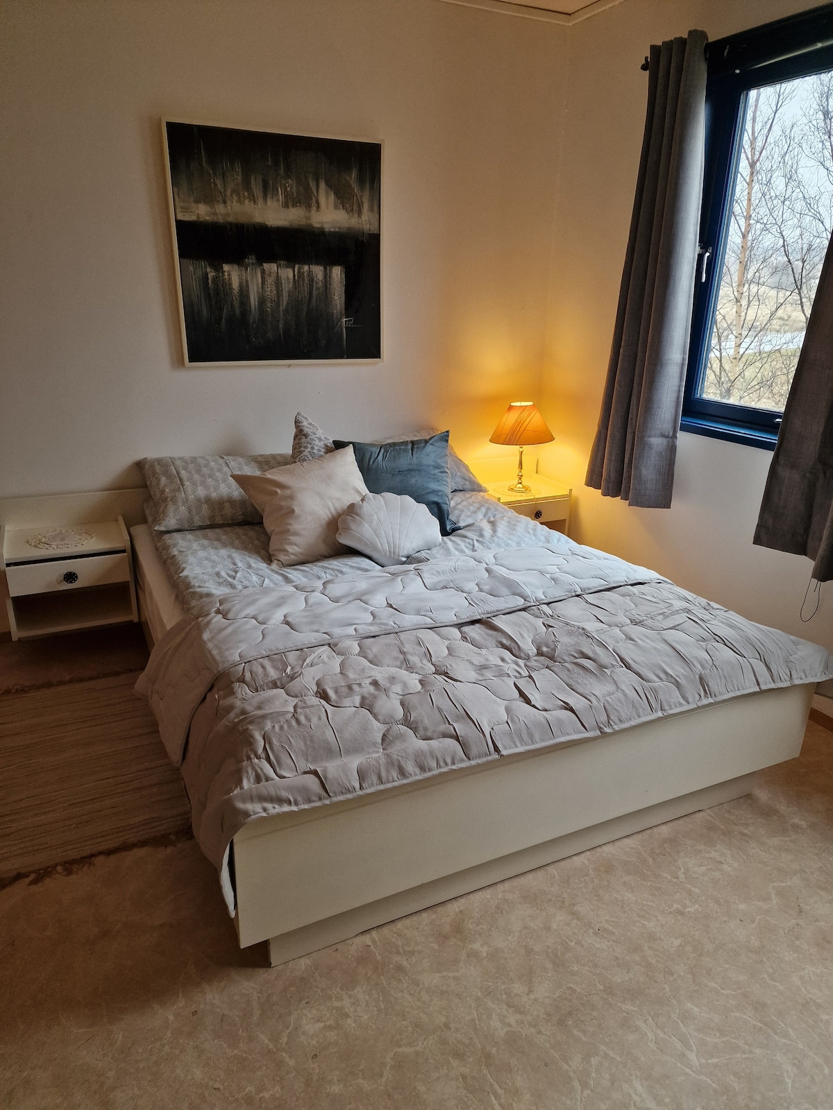 Hora del check-in: 00: 00 Salida a más tardar a las 12:00 La cabaña está a unos 20 minutos de Sortland, tiene 65 metros cuadrados y se construyó en 2013. Estacionamiento para más de 2 autos La cabaña tiene electricidad, pero no agua, por lo que no hay agua del grifo. El propietario traerá agua potable que estará en la cabaña cuando llegues. 2 dormitorios con capacidad para 4 personas en el interior. La habitación 1 tiene una cama matrimonial La habitación 2 tiene una litera con capacidad para 2 personas. Hay 2 baños con ducha y peaje .