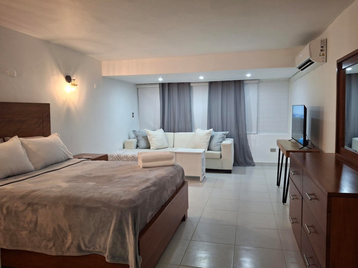 Apartamento de un dormitorio ubicado en el lugar más cómodo, tranquilo y privado de Sosua. Cerca de los mejores restaurantes y playas. Además de una gran piscina donde puedes tomar el sol y relajarte. El apartamento consta de un balcón espacioso, patio abierto, seguridad 24/7, aire acondicionado, cocina, lavadora, wifi y TV inteligente.