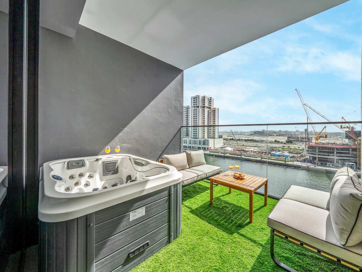 Jacuzzi privado con vista al canal, cerca de BURJ Khalifa
