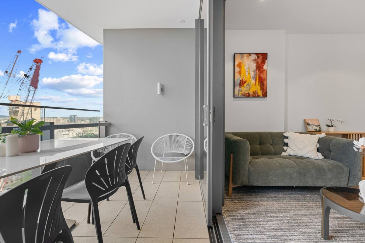 Find your calm in this Diamond-Class 1BR retreat on Level 59 of Queen’s Wharf. Enjoy sweeping river & city views, a breezy electric window, modern interiors and high-speed Wi-Fi—just steps from South Bank, Botanic Gardens and Brisbane’s finest dining. Ideal for couples, corporates and weekend escapes. ✔ No Added Cleaning Fee ✔ King Bedroom & Sofa Bed (Sleeps 4) ✔ Full Kitchen & Open Living ✔ Indoor Electric Balcony Window ✔ Smart TV & Wi-Fi ✔ Pool, Gym, Sauna & Restaurants Learn more below 👇