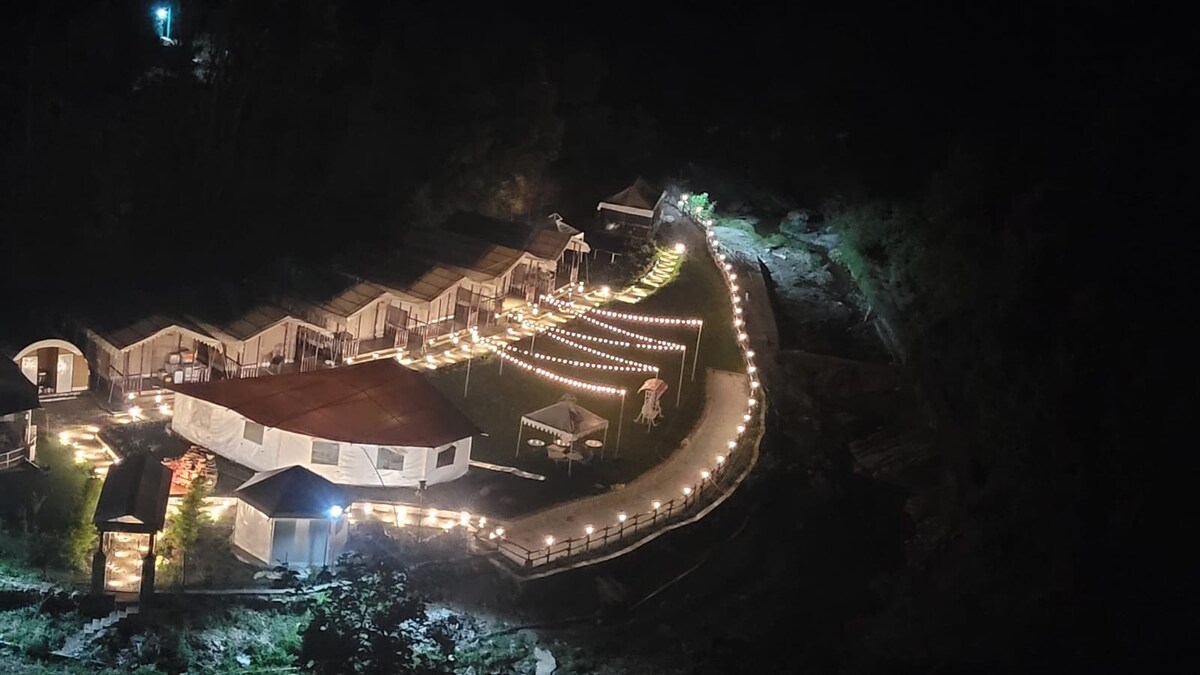 Perched on a peaceful hillside near Bhimtal within an estate, this hillside stay combines natural charm with modern comfort. With scenic views, it features a king-sized bed, wooden interiors, and a 32” TV; it’s designed for relaxation. Guests can savour sunset & sunrise vistas, unwind on the lawn with a BBQ & bonfire, or enjoy meals at the in-house dining. Close to Chota Kailash Dwar, trekking trails, Naukuchiatal (11.4 km) and the paragliding site (8.3 km), perfect for calm and adventure.