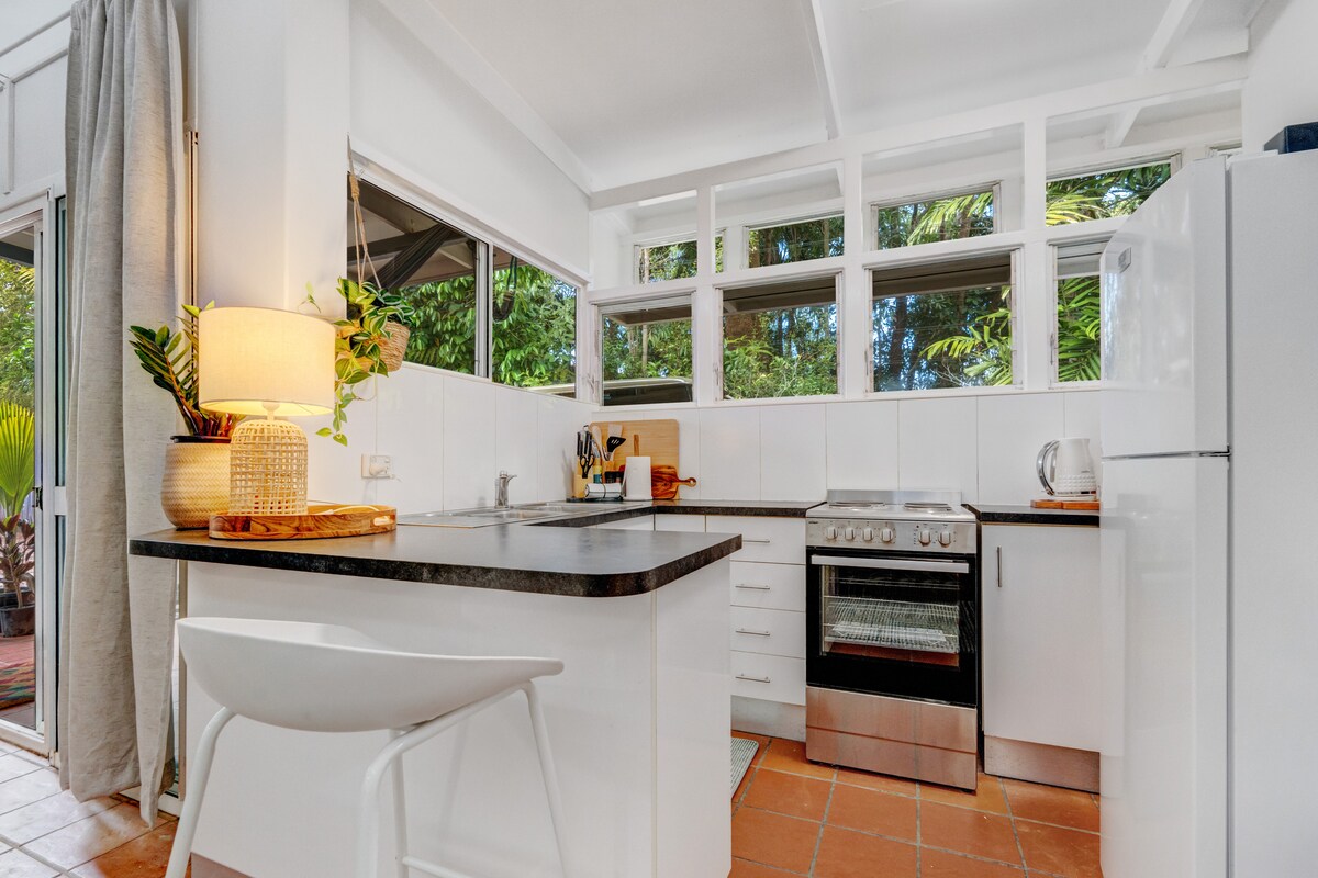 La tarifa diaria es para una pareja que utiliza el dormitorio king. Si quieres usar un dormitorio adicional, son 30 dólares por persona y noche. Reserva con la tarifa de persona adicional. Moderna casa de campo de estilo tradicional de Queensland, a solo unos minutos en coche de la playa, cafeterías, restaurantes y tiendas minoristas. Relájate en nuestra granja de frutas orgánicas con impresionantes vistas a la selva tropical patrimonio de la humanidad. Hay pequeños toques para que te sientas bienvenido y a gusto. Espacio suficiente para familias.