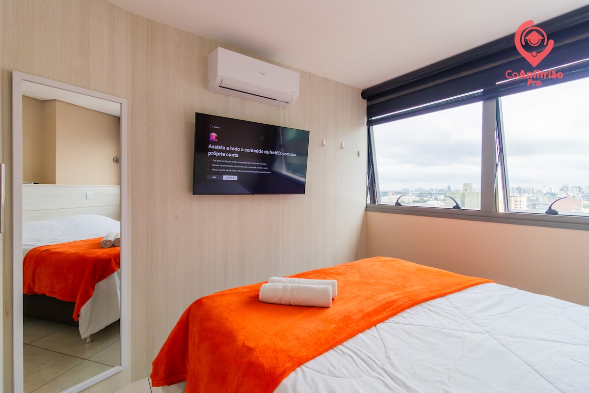 Este estudio en la lujosa Diamond Tower acomoda hasta 2 personas con cama queen premium, sábanas calefaccionadas y ropa de cama 5 estrellas. Ofrecemos cuna bajo solicitud previa. Cuenta con aire frío/calor, Smart TV, servicios de streaming, cortinas blackout y un balcón increíble con puertas insonorizadas. El edificio tiene conserjería 24 horas, lavandería, espacio de coworking y zona de barbacoa gourmet. A pocos pasos del Pátio Batel, Plaza Japón y cafés y restaurantes de excelencia.