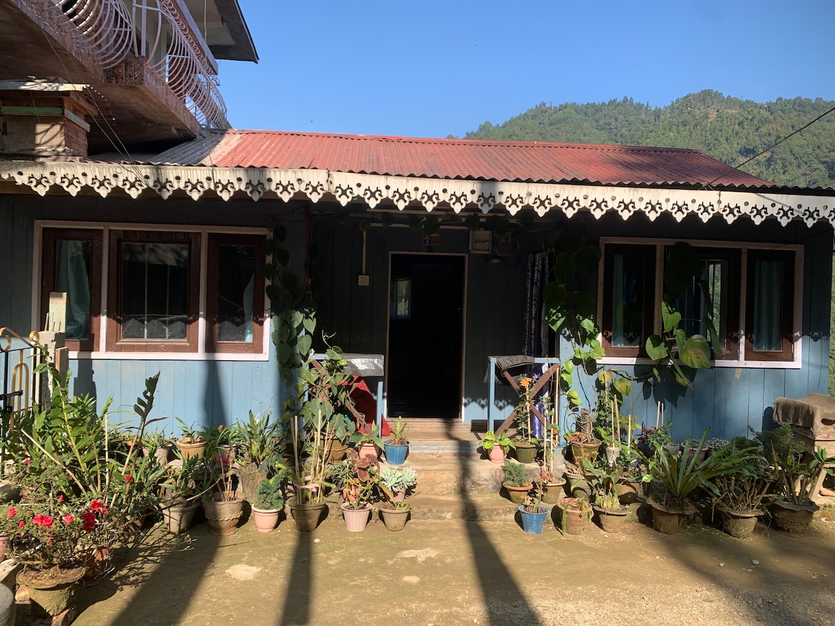 Imagine a cozy cottage nestled in the serene of Lebong tea garden, Darjeeling, surrounded by lush green mountains and tall, majestic trees. Inside, a crackling indoor fireplace adds warmth and charm to the ambiance, casting a gentle glow over the room. As you step outside, a well-tended lawn is adorned with vibrant plants, creating a picturesque setting of peace and tranquility. This idyllic cottage offers the perfect escape into nature's embrace. Please talk to me before you book with me ❤️