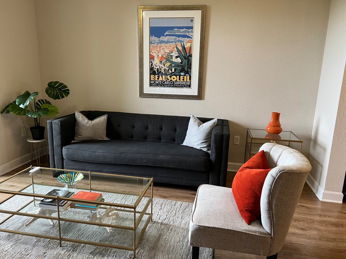 Suite moderna de 1 dormitorio + cargador de vehículos eléctricos • Cerca del estadio y TPA
