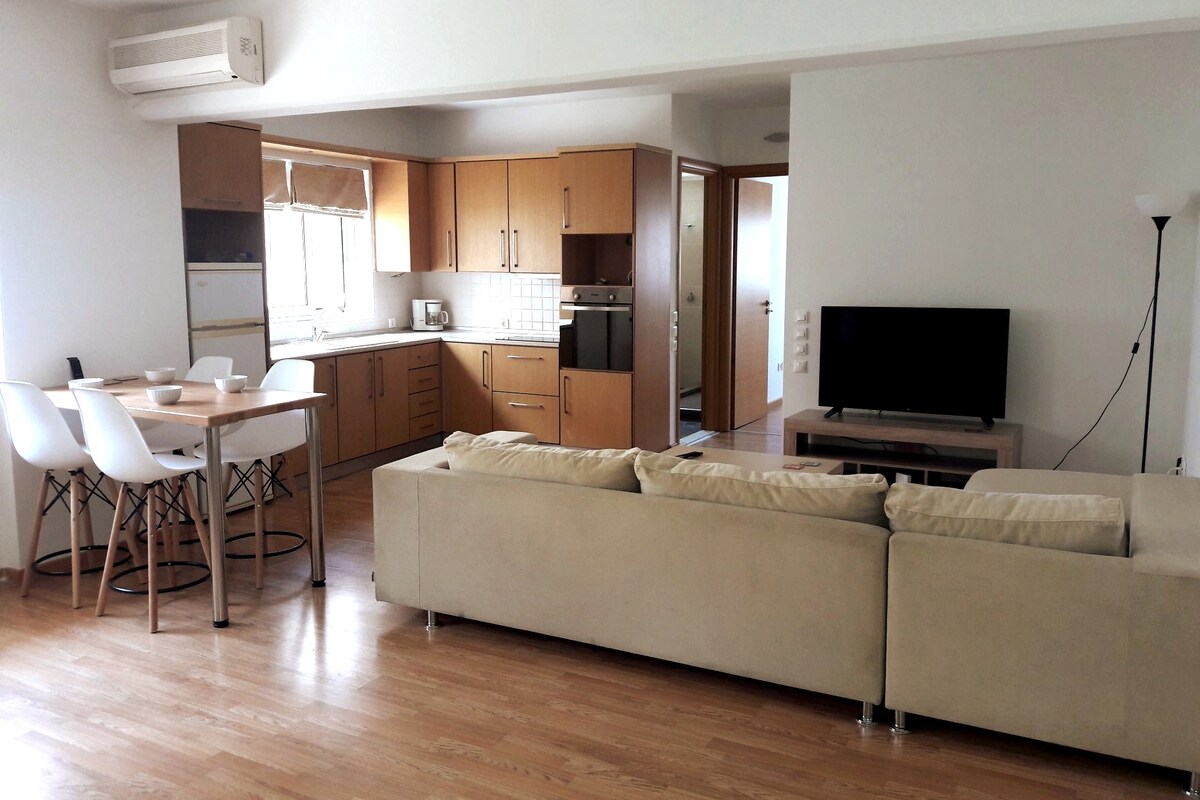 Apartamento de 70 metros cuadrados en planta baja en zona residencial de Pollonia , a solo 4 minutos a pie del centro y a 2 minutos de la orilla del mar. Piscina y terraza totalmente protegidas de los vientos del norte y solo para tu uso privado. La casa está en el tranquilo barrio de Pollonia, a solo 300 m del centro con restaurantes y tiendas y a 200 m del mar. La limpieza diaria está incluida y es opcional durante tu estadía .