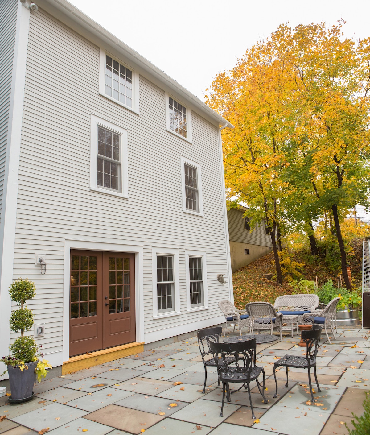 El Barn On Main es un edificio histórico de calidad arquitectónica situado en Main Street, en el centro de Manchester. Ligeramente apartado de la calle, no hay ruido de la calle en absoluto. El espacio habitable del granero de 3 pisos da al sur y está lleno de luz. Ofrece total privacidad y, al mismo tiempo, tiene un patio privado soleado y bien amueblado con vistas al río y a la montaña.