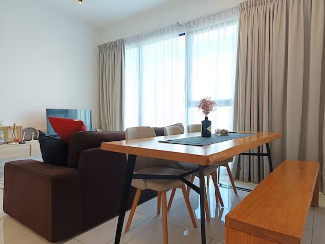 ¡Lujosa y espaciosa unidad de 3 dormitorios con bañera! Camas tamaño king y queen de primera calidad que garantizan un buen descanso aquí, ¡con increíbles vistas al centro comercial Midvalley Southkey! ¡Lo más destacado! - Bañera privada. - Televisor inteligente de 65 pulgadas con aplicaciones de YouTube y Netflix. - Mesa de billar. - Consola de juegos retro. - Dispensador de agua potable. Rodeado de centros comerciales y una amplia variedad de sabrosa comida local. - A 2 minutos en coche de Midvalley Southkey JB. - A 5 minutos del centro comercial KSL City. - A 8 minutos del centro comercial City Square y de la aduana JB.