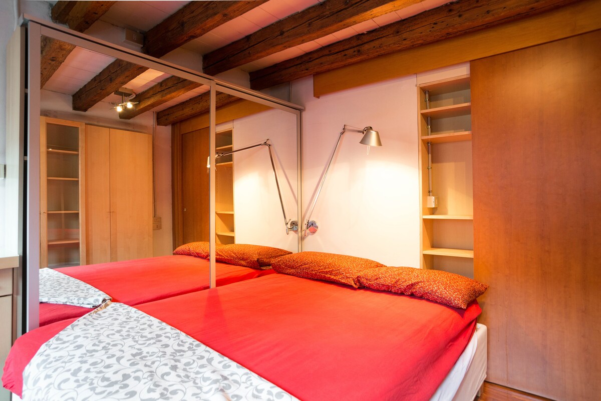 Apartamento en el segundo piso situado a los pies del Ponte delle Guglie, con unas vistas espectaculares del canal de Cannaregio y del Rio Terrà San Leonardo. Decorado con esmero, pone en valor elementos específicos de la tradición veneciana mediante la recuperación de vigas con frescos y lámparas de araña de cristal de Murano. La proximidad a la estación de tren y a las paradas de los «vaporetti» hacen que este apartamento sea muy cómodo tanto para las llegadas como para visitar la ciudad.