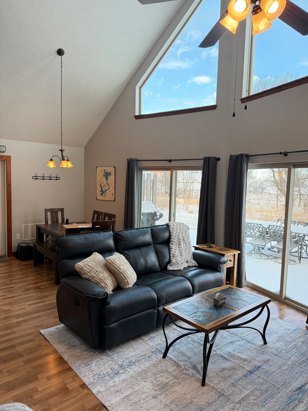 RESUMEN DE ROPA DE CAMA: Nivel principal - Recámara 1: cama king El sofá seccional en la sala de estar podría proporcionar cama flexible adicional (todas las ventanas tienen cortinas) Segundo nivel Dormitorio 2: cama king y sofá cama doble XL Habitación 3 en el segundo nivel: cama doble sobre una litera completa Segundo nivel, habitación 4: cama queen Ven a experimentar la vida del lago en su mejor momento en el Rock'n Reel en East Lake Okoboji. Esta casa de 4 dormitorios y 2 baños inspirada en el lago y ubicada a orillas del lago East Okoboji es el lugar perfecto para una escapada durante todo el año.